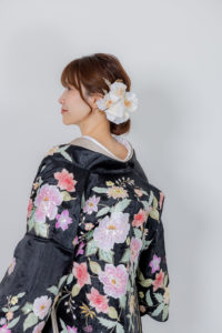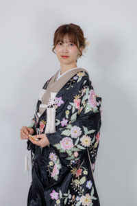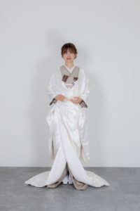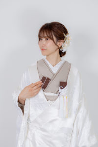 白色の掛下を使用することが多かった衣装ですが、掛下をカフェオレにするだけでさらに表情を変えて写真に残していただくことができます。