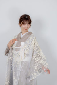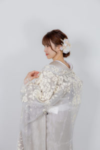 オーガンジーなので、通常の打掛とは違ってとっても軽い、そして洋装に近いイメージで撮影していただくことができます。