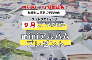 8月と9月中に、過ごしやすい秋(10月・11月)のフォトウェディングをご成約いただいたお客様へ、特別なプレゼントをご用意しました!